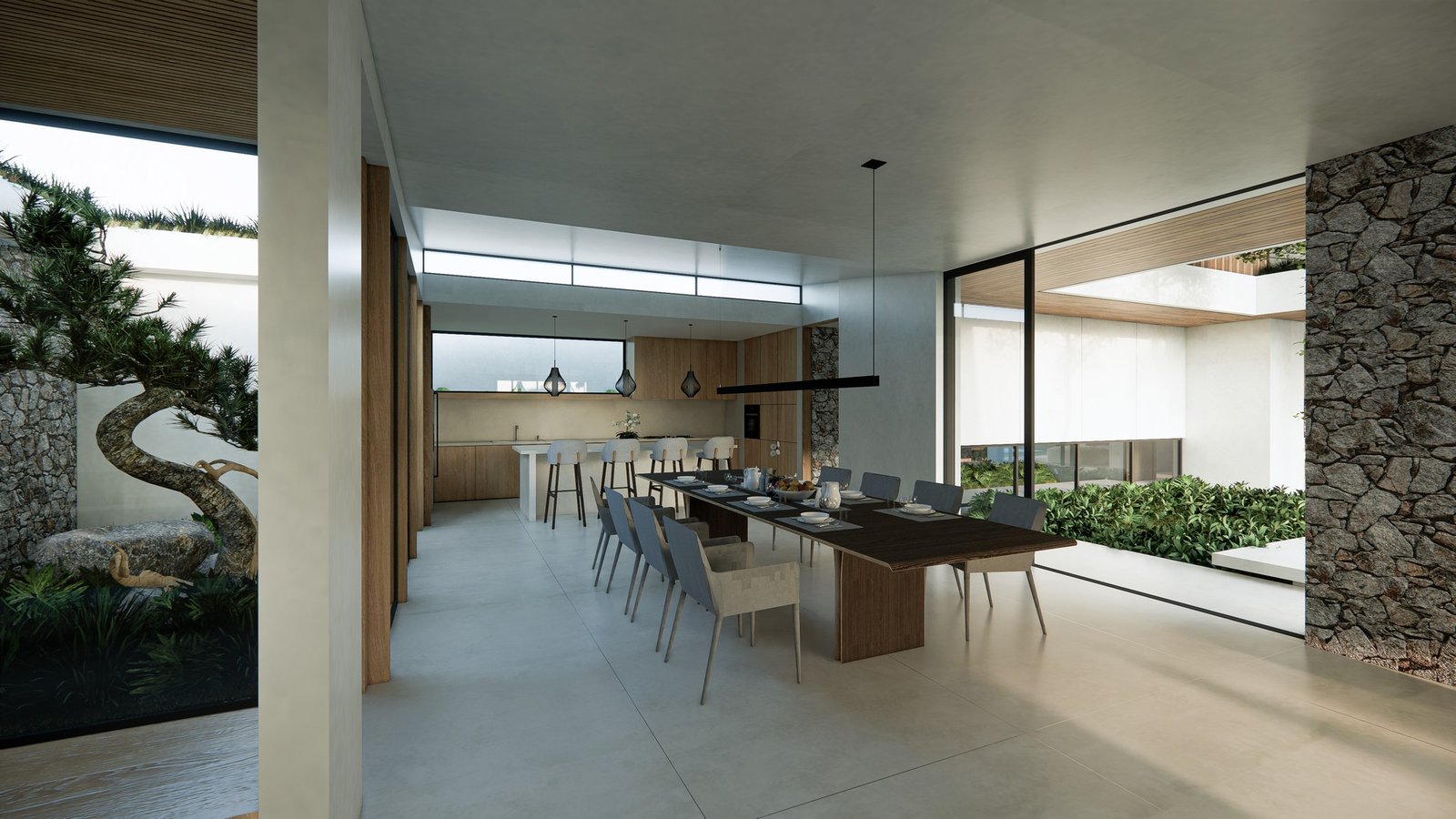 Set on 900m² of land with 400m² of living space, the villa comprises 4 en-suite bedrooms, a multipurpose room with its own bathroom, and an enclosed living and dining area overlooking the landscaped garden and a 50m² swimming pool. Additional features include a staff room, laundry and storage areas, and private parking for cars and motorbikes. Property is in near completion construction progress.