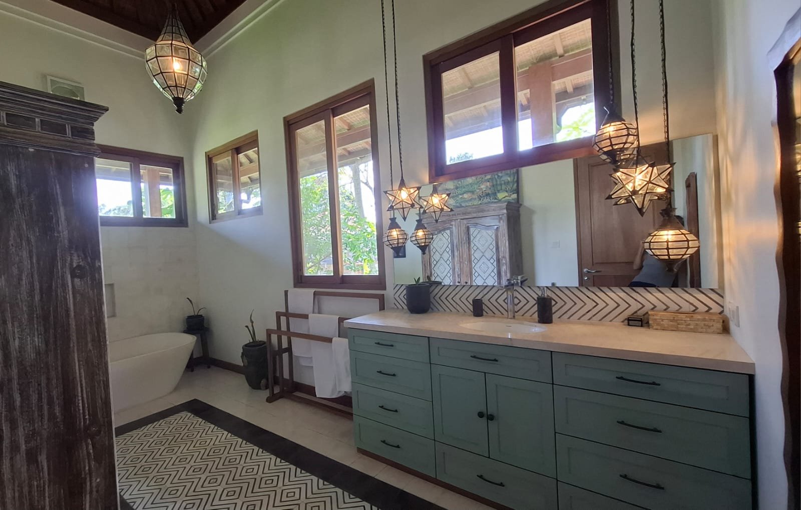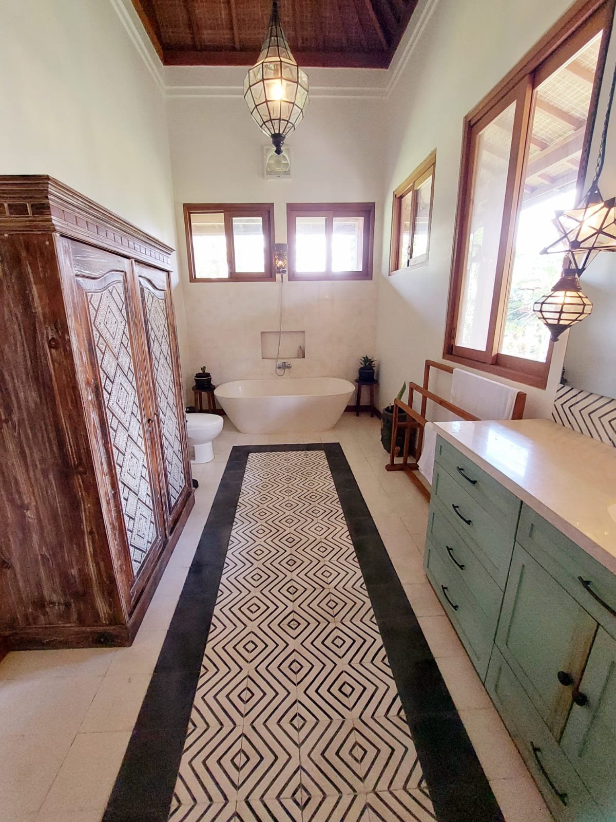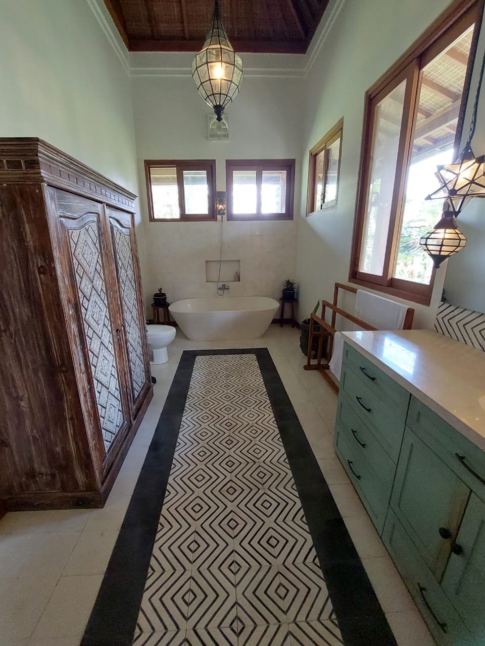 A 6 kW solar system reduces electricity bills and supports during power outages. Additional amenities include filtered tap water, A/C, large fridge, stove, oven, blenders, food processor, slow cookers, coffee maker, microwave, washing machine, stereo system. The property also includes — custom built teak furniture and cabinets, blackout curtains, top quality doors and windows with solid brass hardware.
