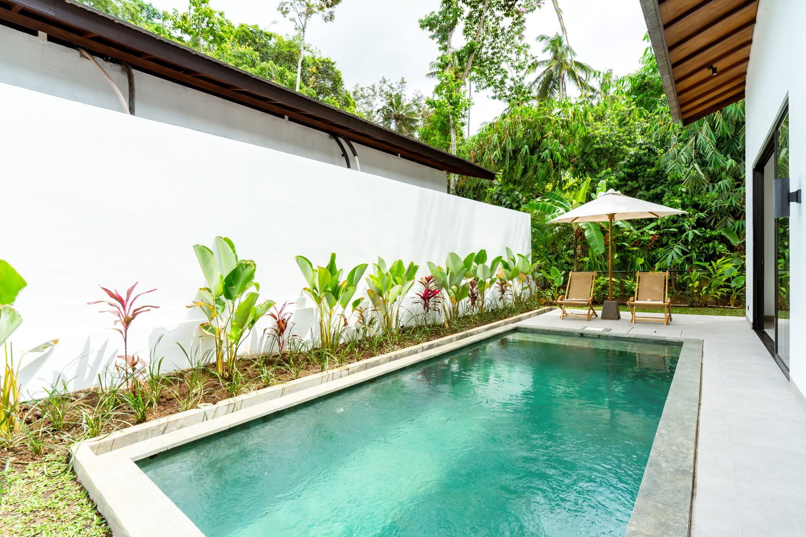 The villas feature spacious open plan interiors, enclosed living and dining areas, private swimming pools, and lush gardens. Ideal for both personal use and investment. Located approximately 20 minutes from central Ubud, the property provides a peaceful setting while remaining conveniently accessible.