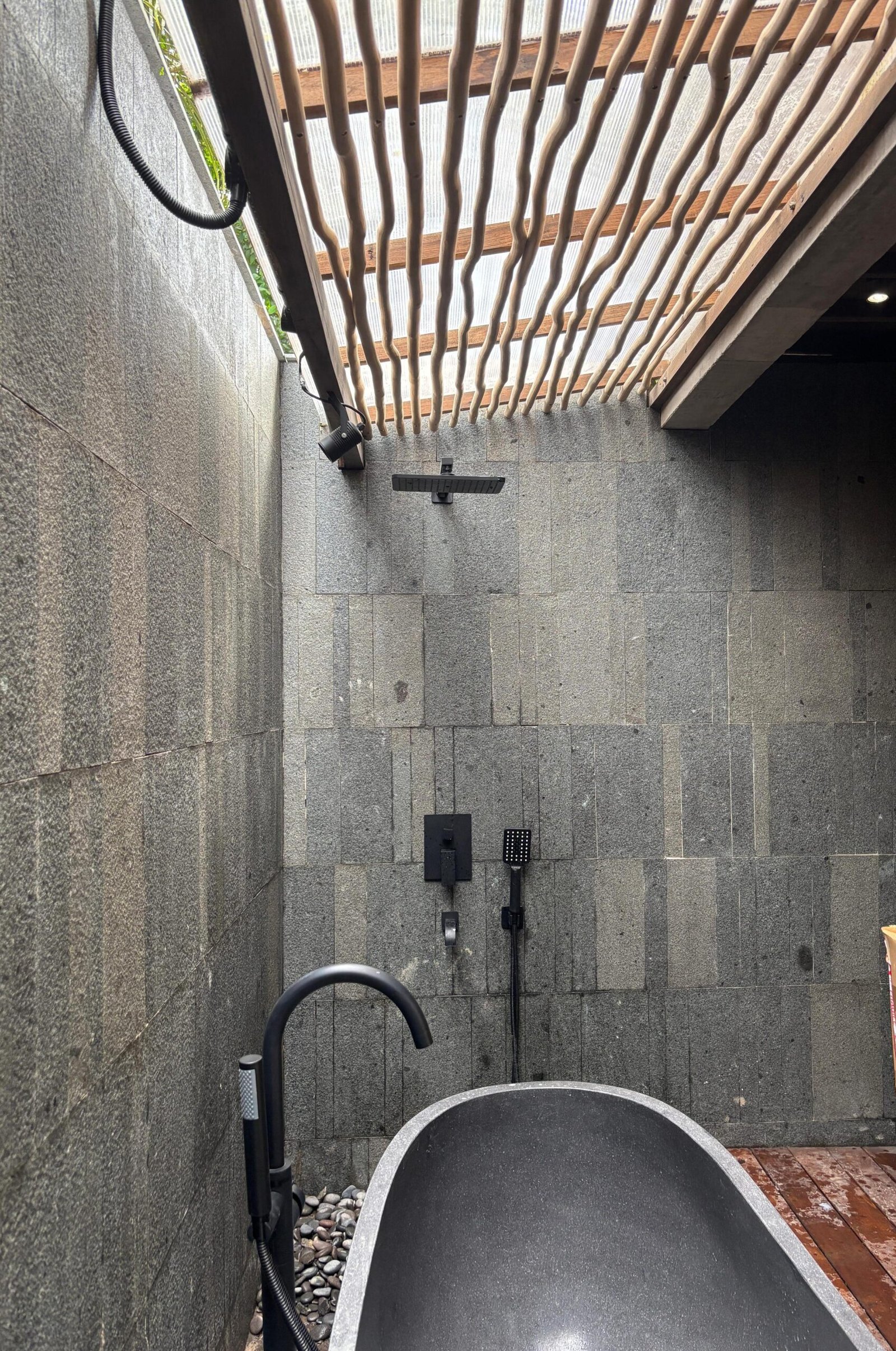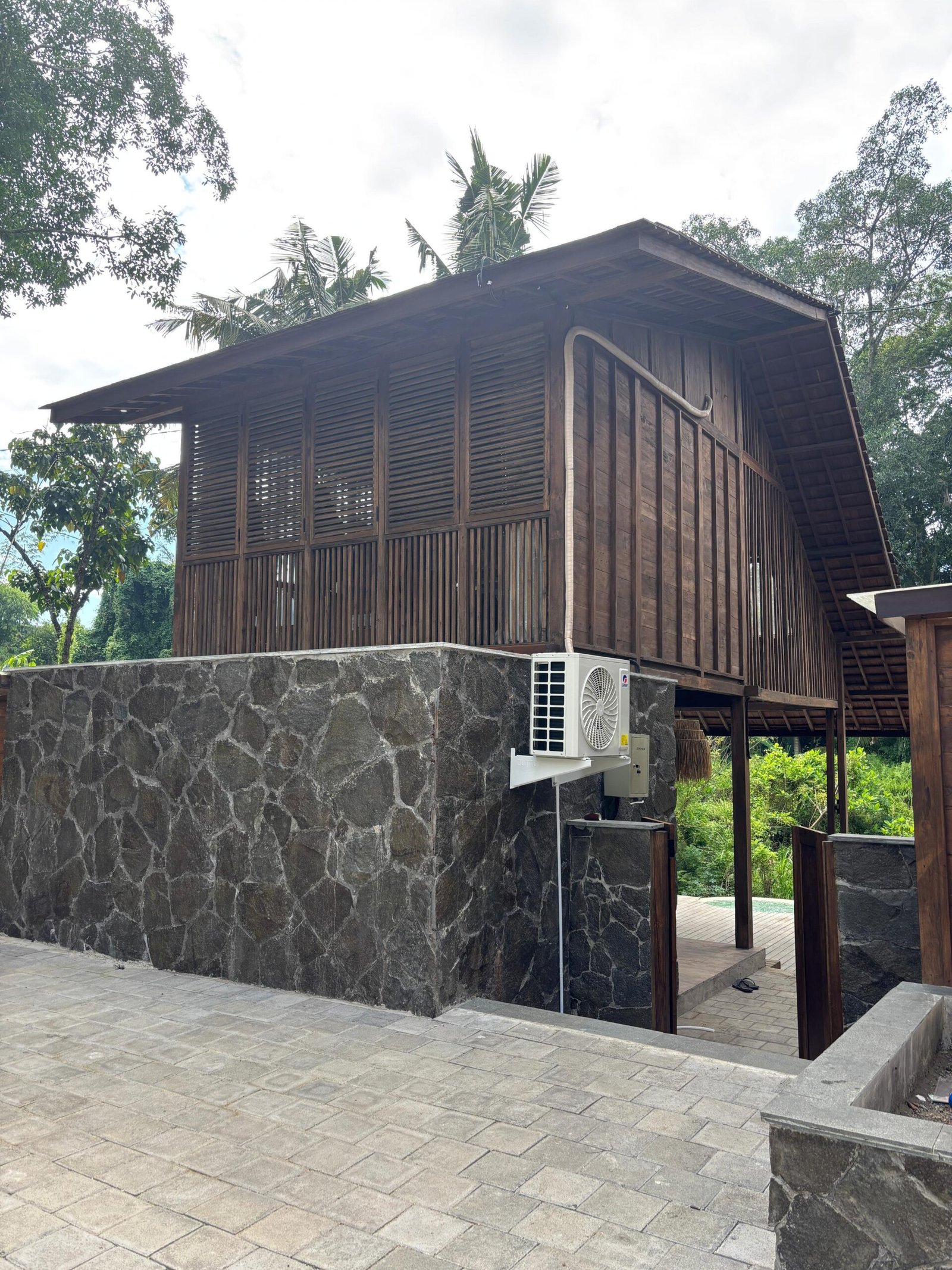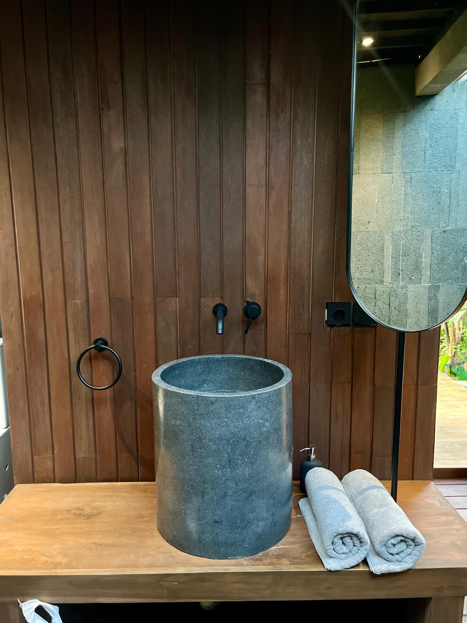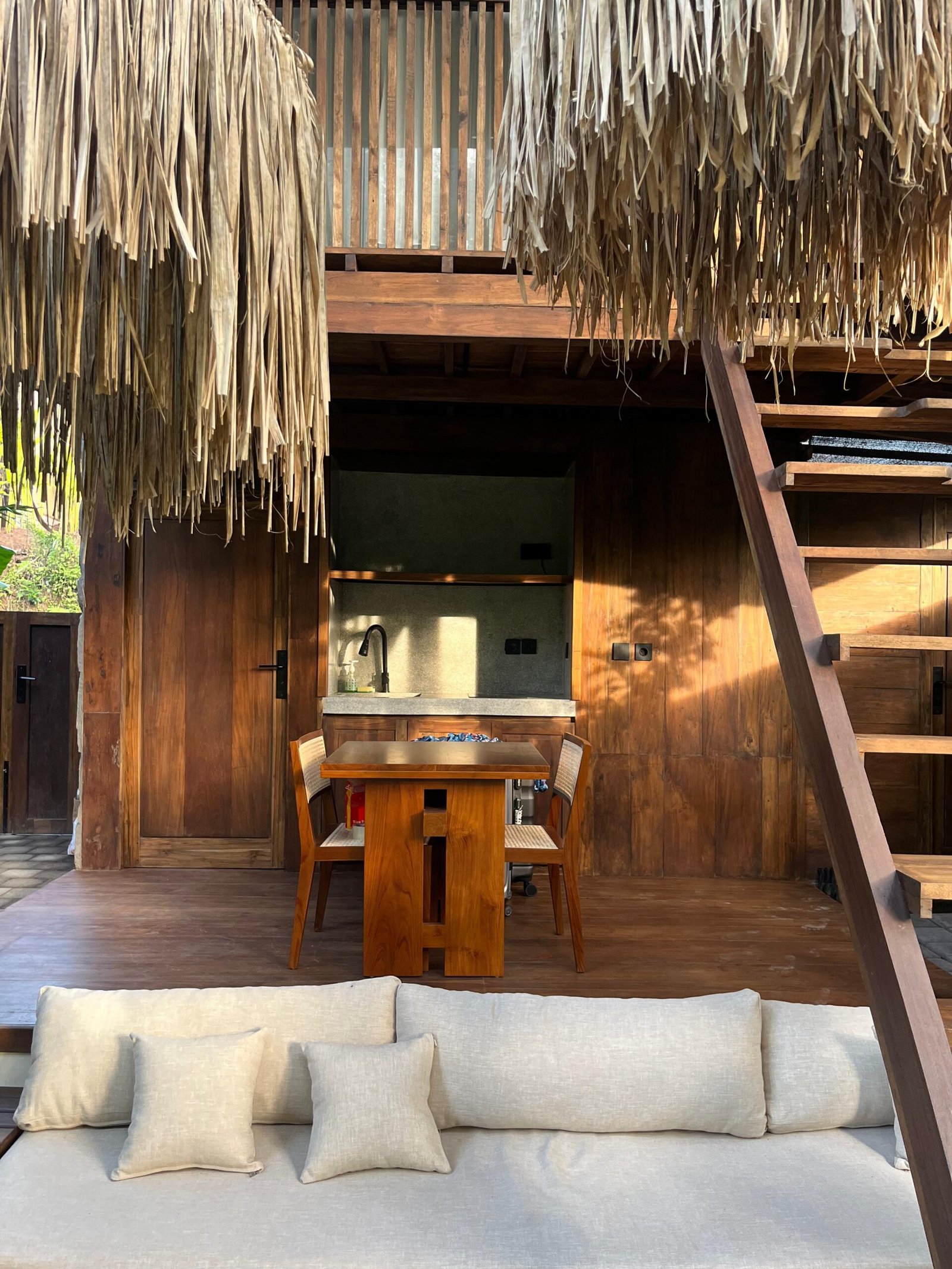The villa is made with natural materials — high quality wood, stones and bamboo elements — offering an organic and luxurious feeling.