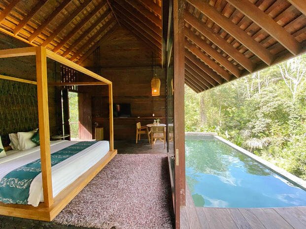 This intimate One Bedroom Private Pool Villa is wrapped in peace, space, and nature. The property comprises of a fully furnished 1 en-suite bedroom with bathtub and its also completed with private swimming pool overlooking the jungle with river view. It situated in a private gated luxury resort in Keliki area, Ubud and is for sale with Freehold title or 60 years Lease for IDR 2.5 Billion.